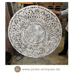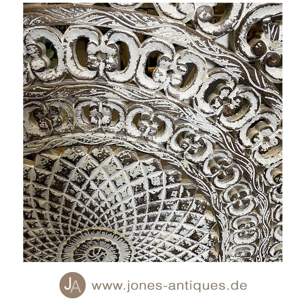 Beschreibung:handgearbeitetes Mandala aus Holz geschnitzt in der Farbe creme-weiß