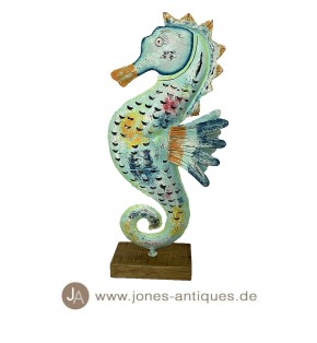 Lantern in the shape of a big seahorse on a wooden base in a very nice multicolor finish