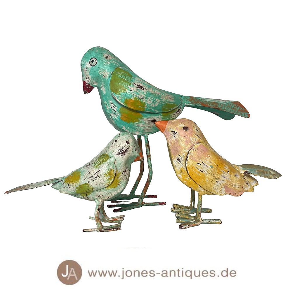 Ensemble de 3 oiseaux en fer peints à la main et colorés