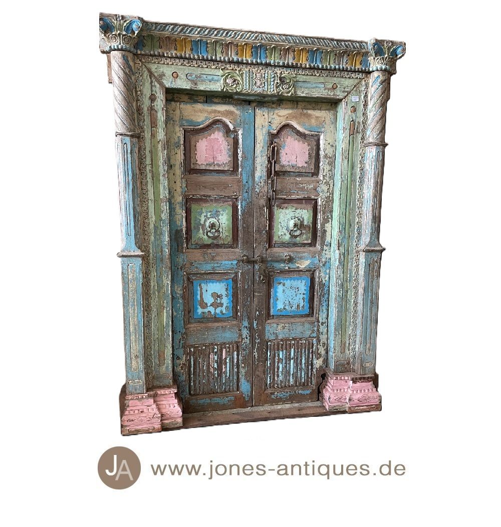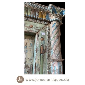 Magnifique portail ancien provenant d'un bâtiment majestueux du Gujarat, au nord-ouest de l'Inde. Démontable, en teck. Sa patine d'origine et ses ferrures finement travaillées font de ce portail une pièce véritablement unique ! Nous avons toujours des portails de ce type en stock. N'hésitez pas à nous contacter si vous êtes intéressé par d'autres pièces !